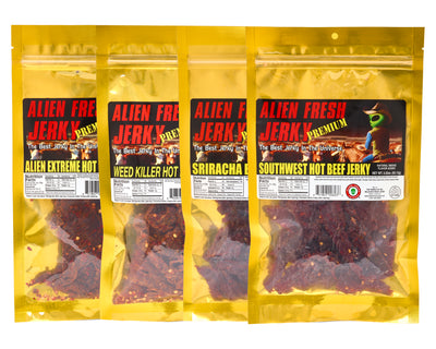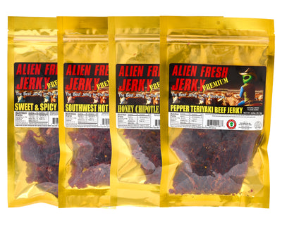 NOTE: There is something else you should know about Alien Fresh Jerky human, every single slice is handmade in America, by Americans with 100% American steak. No fillers, trimmings, scraps, “beef dust”, glues, or any other “shortcuts” have been used to produce our mouthwatering jerky.